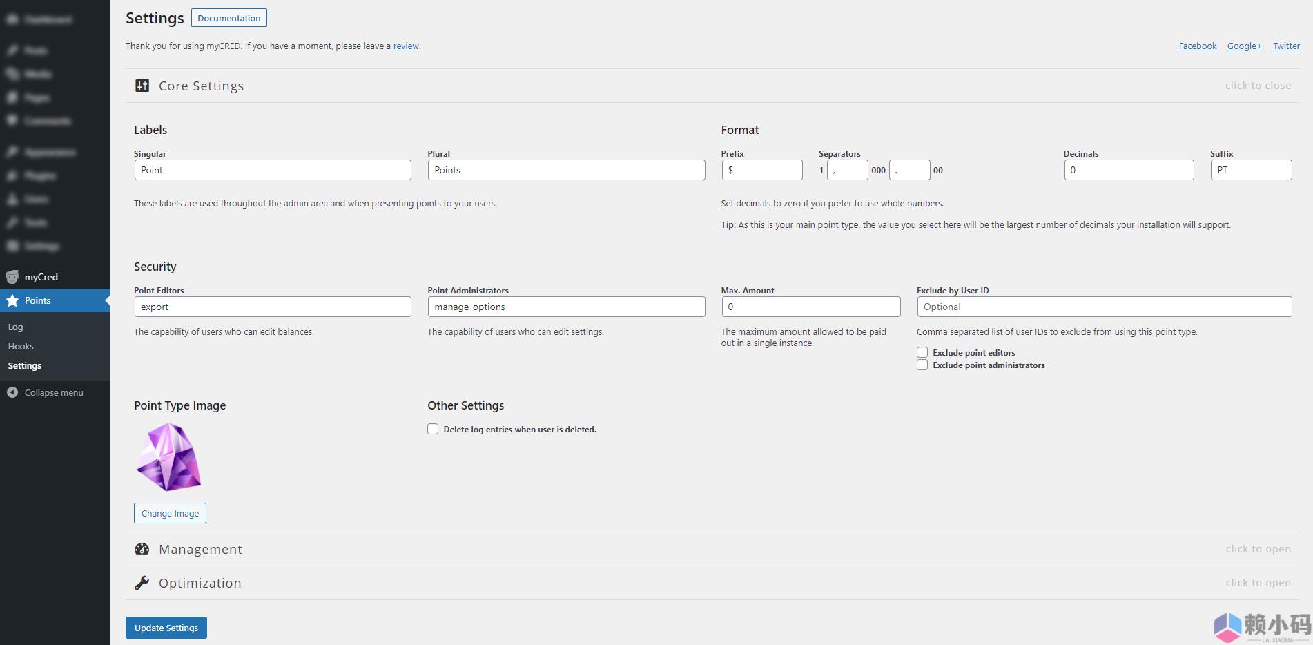– 白色标签:myCred 内置了对白色标签的支持:这允许您将管理区域中的插件重命名为您喜欢的任何名称。