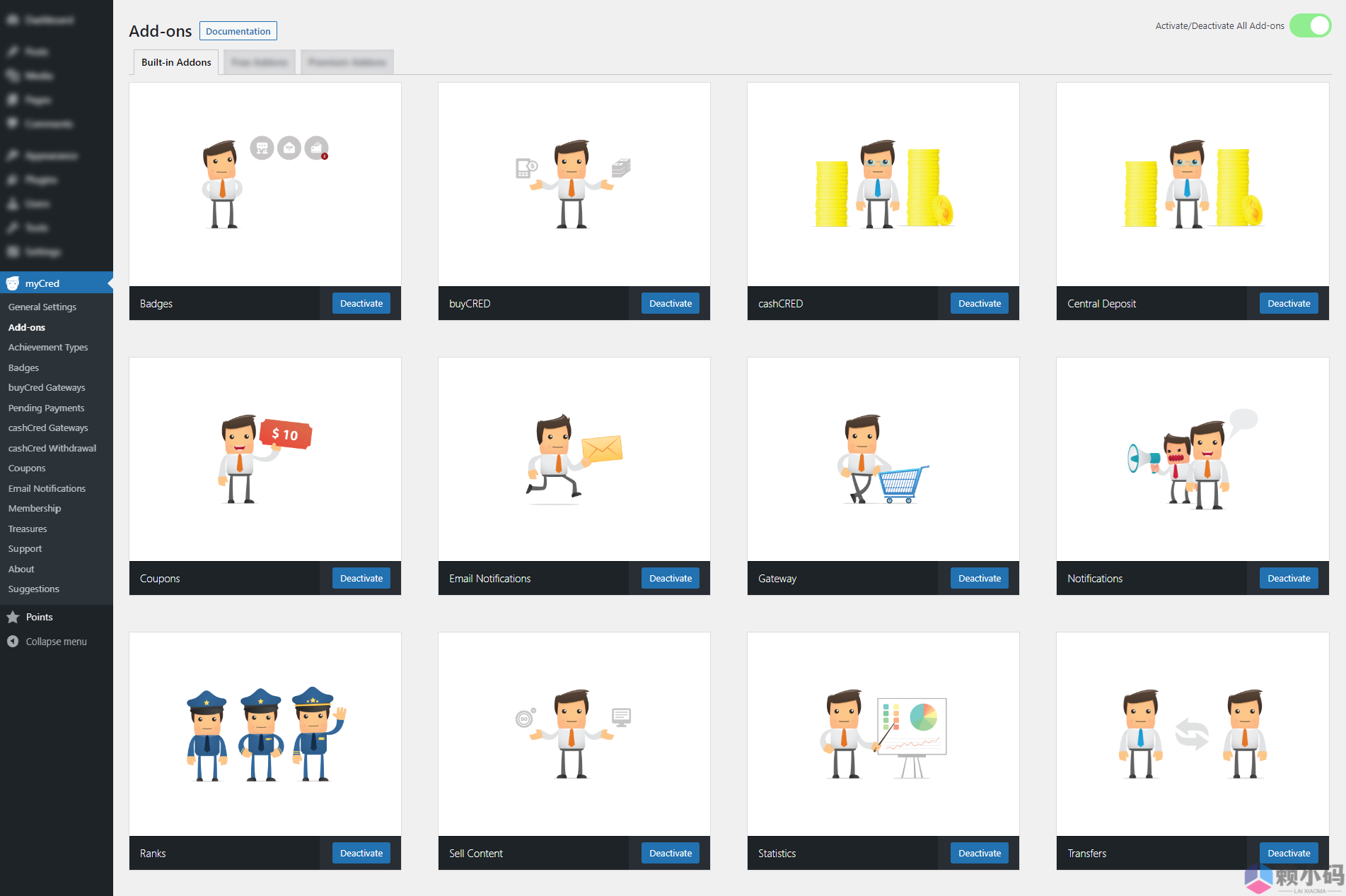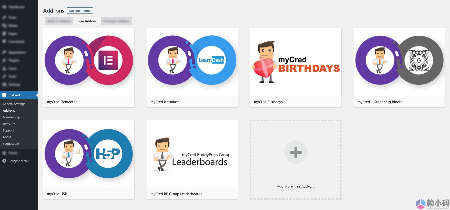 MYCRED 的附加插件有: