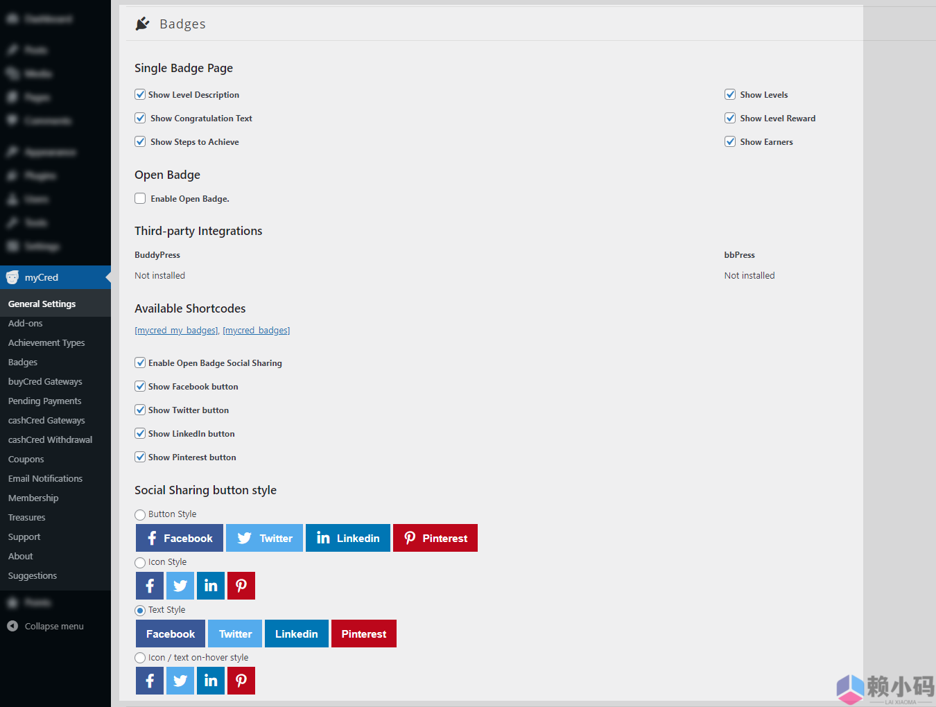- myCred Social Share Add on
