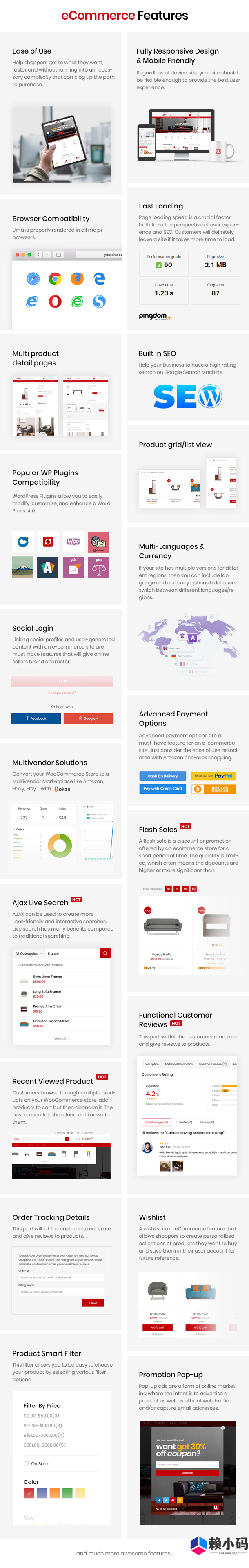 Urna 推出了方便的移动菜单,可让您的购物者轻松找到他们想要的产品。总共,您会收到多达三百页,并可以从一键式演示内容导入中受益。立即享受多种内容,并立即创建一个电子商务页面。您可以创造出色的成果,从而推动您的销售并帮助您将业务发展到一个新的水平。
