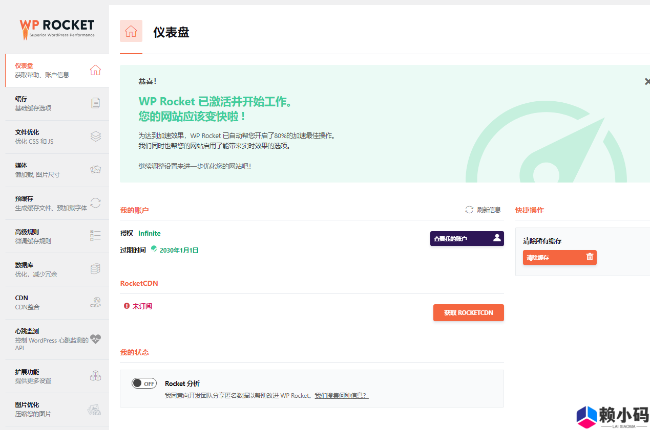 WP Rocket是一个高效的WordPress缓存插件,它通过减少网页的加载时间、优化缓存设置以及其他高级特性来提升网站速度。该插件拥有直观的用户界面,即使对于没有技术背景的用户也能轻松使用。